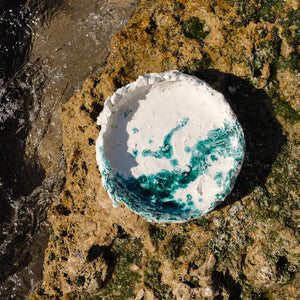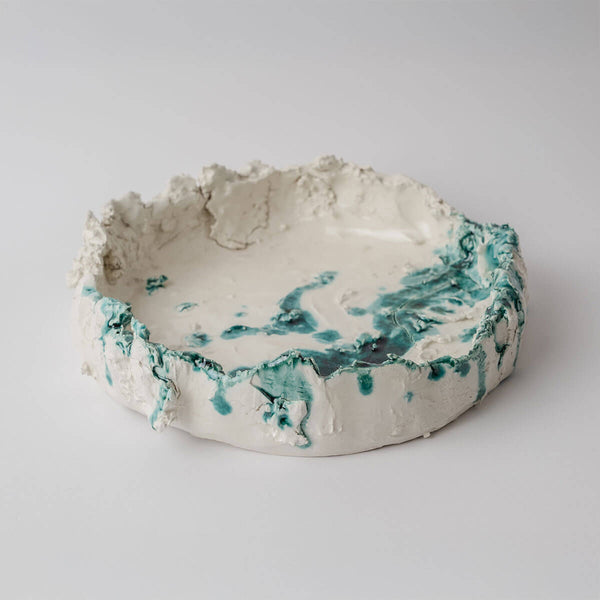 The Terra Marina tray is inspired by the dried riverbeds of our Sicily, where clay cracks and forms unique textures as it dries. The precious glossy white evokes the purity of water, while the copper-green transports us to an underwater world. Can a simple decorative item become Art?