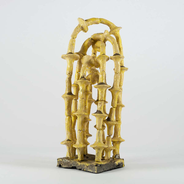 Motivi di curvature verticali is a ceramic piece composed of small curved, repeated modules. Its structured yet fluid design explores rhythm and movement, creating a dynamic interplay of light and shadow. A refined expression of form through repetition and balance.