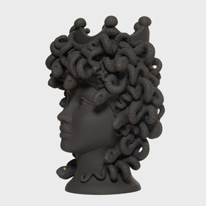 Anthropomorphic terracotta vases that reinterpret traditional Sicilian ceramic heads with a contemporary twist. Stefania Boemi strips away the glossy ceramic surface, applying a monochromatic, matte finish that enhances the purity of form. The result is a modern, sculptural piece that balances heritage with minimalist elegance.